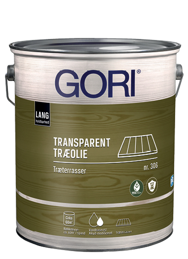 GORI Transparent Træolie 306 Biobaseret specialolie til træterrasser Længere holdbarhed Forstærket UV-beskyttelse Værktøj rengøres med vand og sæbe læs mere find forhandler